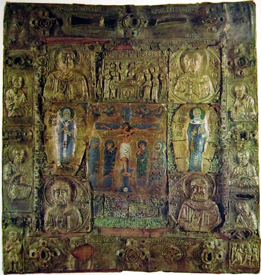 Composite Icon with the Crucifixion, Christ, Saints and Gospel Scenes