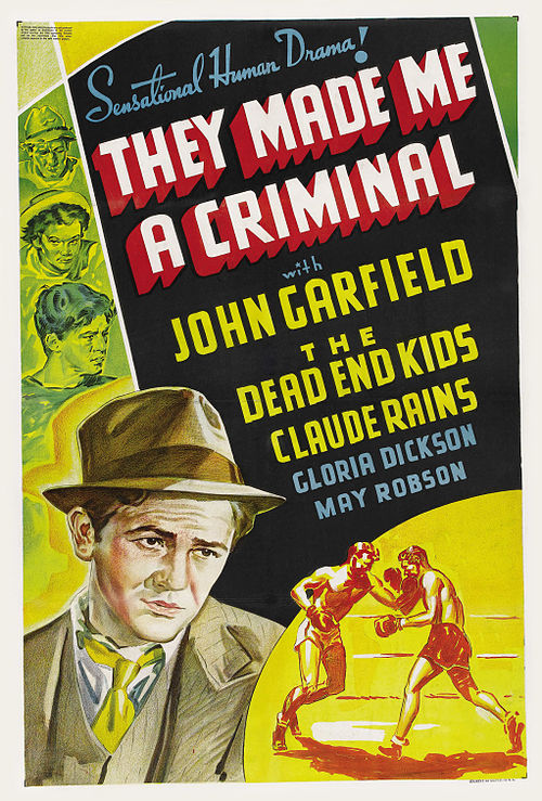 They Made Me a Criminal is a 1939 American Warner Bros. Drama film crime film directed by Busby Berkeley and starring John Garfield, Claude Rains, and Dead End Kids. It is a remake of the 1933 film The Life of Jimmy Dolan. The film was later featured in an episode of Cinema Insomnia. Portions of the film were shot in the Coachella Valley, California.